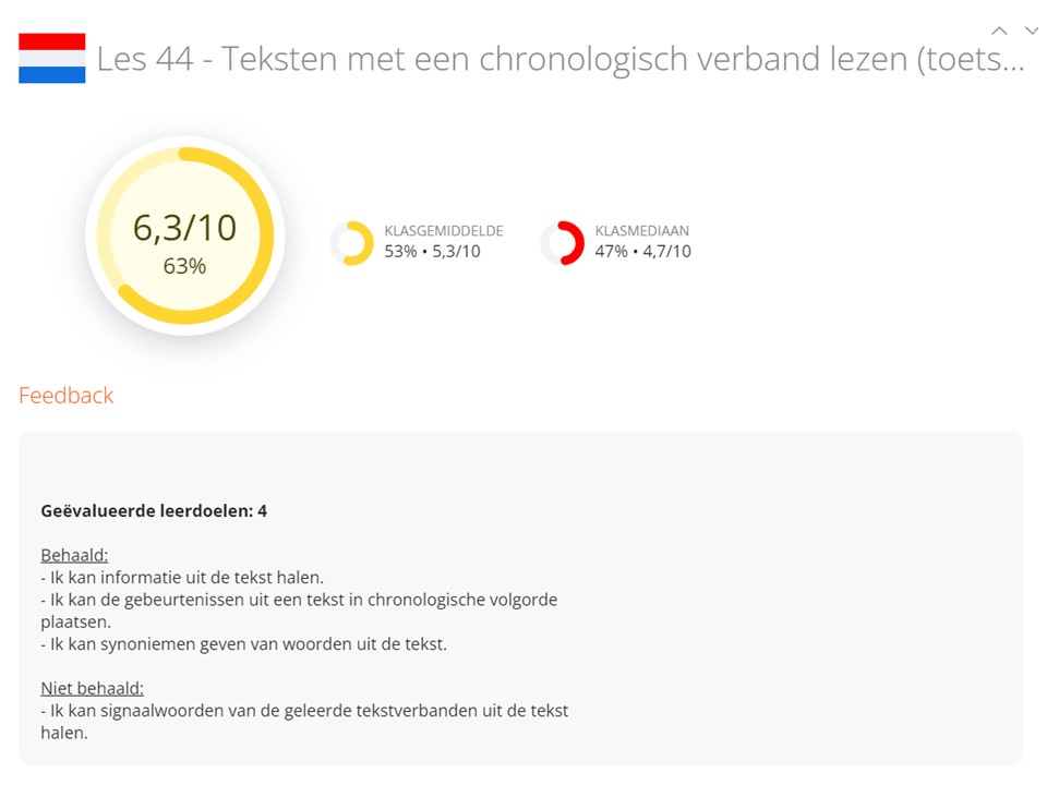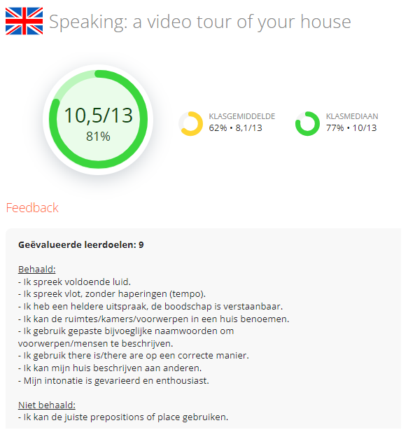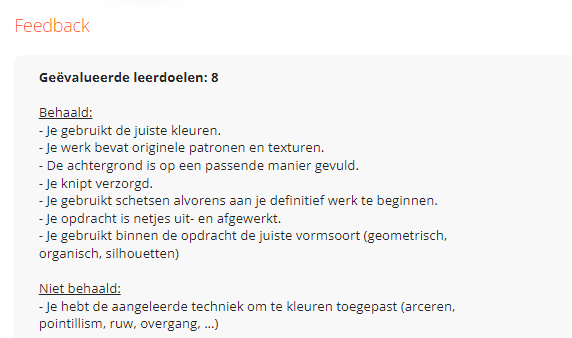 Geef de leerlingen mee welke doelen ze wel of niet behaald hebben zonder zelf te typen. De feedback stuur je automatisch mee met je resultaten naar Smartschool.